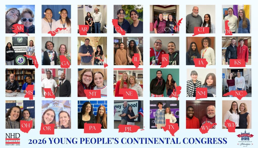 PHILADELPHIA, PA – February 15, 2024 – National History Day® (NHD) is proud to announce its role in planning and hosting the first-ever Young People’s Continental Congress (YPCC). NHD has collaborated with Carpenters’ Hall, the home of the nation’s First Continental Congress in 1774, to produce a one-of-a-kind program for high school students from around the country, celebrating the 250th anniversary of the First Continental Congress. This upcoming July, 14 teams of two comprised of high school students and teachers from each of the original 13 colonies, plus one team from Philadelphia, will convene to explore our nation’s founding principles in their historical context and how they continue to impact our democracy. The program will expand in 2025 to include students and teachers from all 56 U.S. states and jurisdictions.